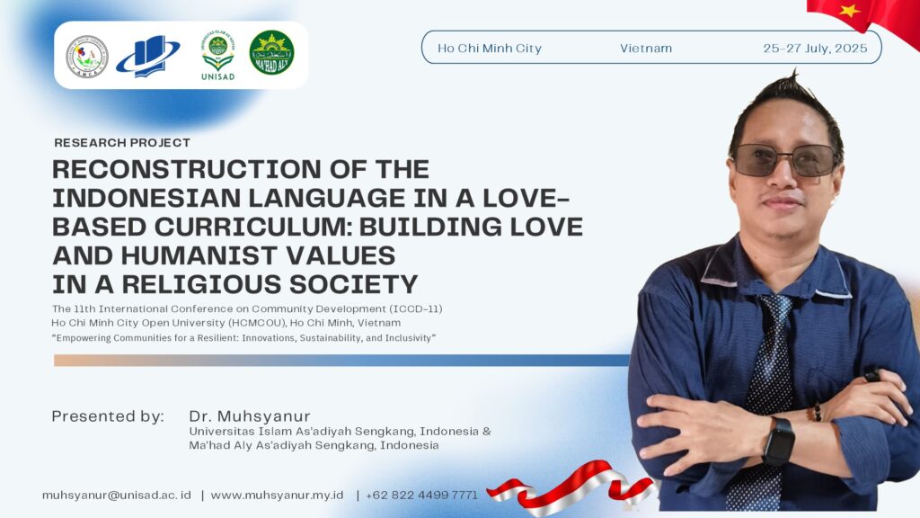 Artikel ini ditulis berdasarkan penelitian “Rekonstruksi Bahasa Indonesia dalam Kurikulum Berbasis Cinta: Membangun Cinta dan Nilai Humanis di Tengah Masyarakat Keagamaan” dan telah dipresentasikan pada The 11th International Conference on Community Development (ICCD-11), tema “Empowering Communities for a Resilient: Innovations, Sustainability, and Inclusivity”, di Ho Chi Minh City Open University (HCMCOU), Vietnam, 26 Juli 2025.